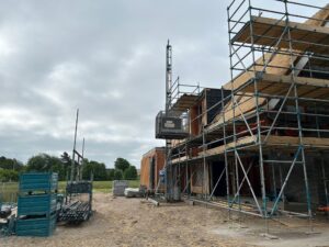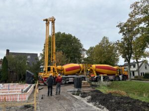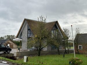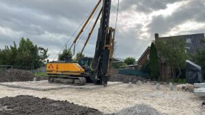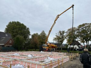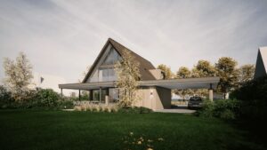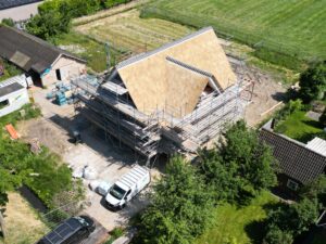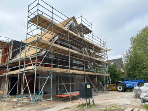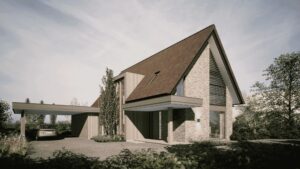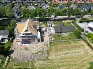 Deze woning, ontworpen door NOW.A Design Studio, wordt zoals altijd door onze eigen vakmannen en onderaannemers uitgevoerd. We zijn gestart met het bouwrijp maken van de grond, en hebben de bestaande water en elektrameter laten verplaatsen naar onze tijdelijke bouwkasten. De eerste heipaal is in het vierde kwartaal 2022 de grond in gegaan. Op de begane grond is de entree, toilet, woonkamer, woonkeuken en bijkeuken gevestigd. aan de achterzijde van de woning kan je via 3 grote schuifpuien het terras op lopen. De eerste verdieping bestaat uit drie slaapkamers, twee badkamers, een apart toilet en een kantoorruimte. Op de tweede verdieping is de zolder gevestigd die met een vaste eiken trap bereikbaar is. Deze wordt gebruikt voor de opslag. In de grote dakkapel aan de zijgevel is het trappenhuis verwerkt, met hierin een eikenhouten open trap. De traptreden zijn door middel van staal verwerkt in de gemetselde binnenwanden, zodat de eiken traptreden mooi aansluiten op het stucwerk en er geen draagconstructie in het zicht zit. Deze dakkapel is aan de buitenzijde afgewerkt met aluminium zetwerk, ge poedercoat in gewenste kleur. De gehele woning is voorzien van een home-control systeem. Voor de buitenplafonds en dakranden van de carport en terras is gekozen voor in het werk geschilderde houten beplating. Deze dakranden zijn aan de bovenzijde weer voorzien van gepoedercoat aluminium zetwerk. Het project is opgeleverd in het eerste kwartaal 2024.