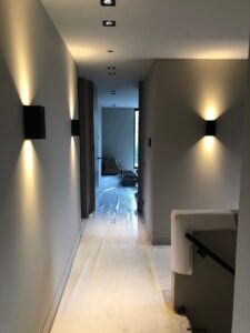 Voor de afwerking van de gevel is er afwisselend gekozen voor buitengevel stucwerk, houten gevelbekleding en metselwerk. Op de begane grond, eerste verdieping en tweede verdieping zijn de vloeren afgewerkt met whitewash behandeld eikenhout. De eiken trappen de eiken trappen in de woning zijn dan ook zo afgewerkt dat deze matchen met de vloeren.