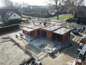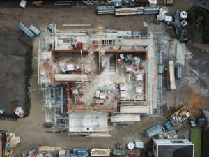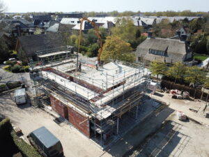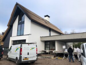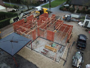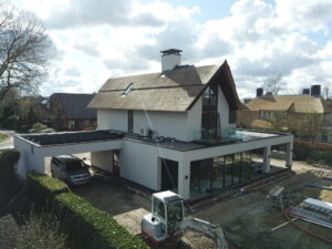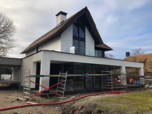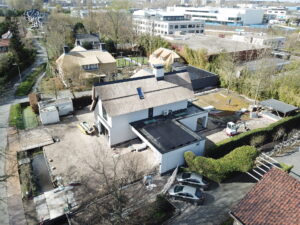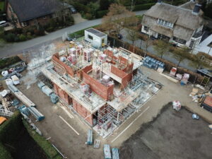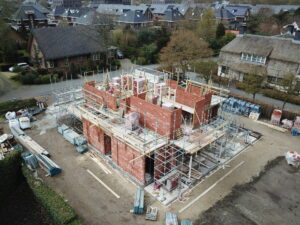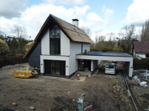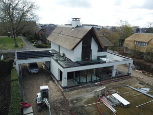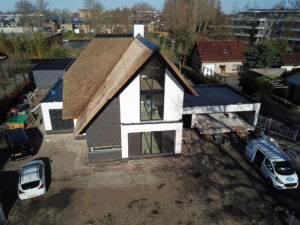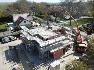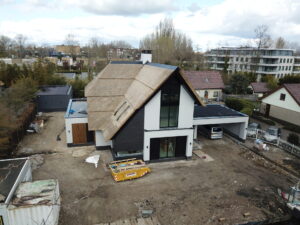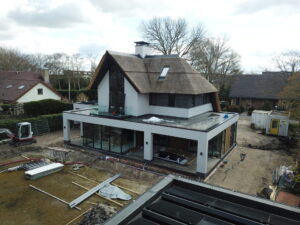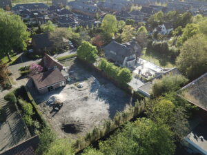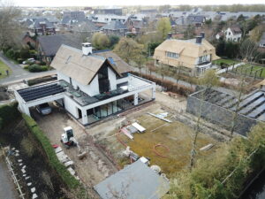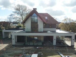 De vrijstaande woning, ontworpen door MAS architectuur, is vanaf begin tot eind door ons gebouwd, inclusief bijgebouw achter in de tuin. We zijn eind vierde kwartaal van 2020 gestart met de werkzaamheden heipalen slaan en het plaatsen van de prefab kelderbak.