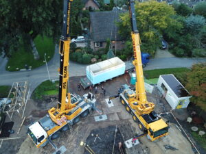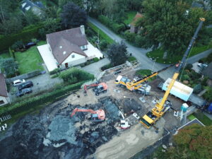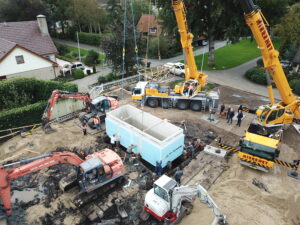In de ontwerpfase was in de éérste instantie nog geen rekening gehouden met een prefab kelderbak, deze is bedacht na overleg met de opdrachtgever en architect vlak voor start van de werkzaamheden.